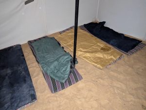 帳篷防風,但睡的地方就比較像野營,睡墊加睡袋沒枕頭的組合