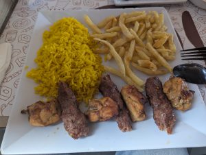 晚餐部份跟前幾天相似,不過肉偏柴份量多,也是硬撐吃完
