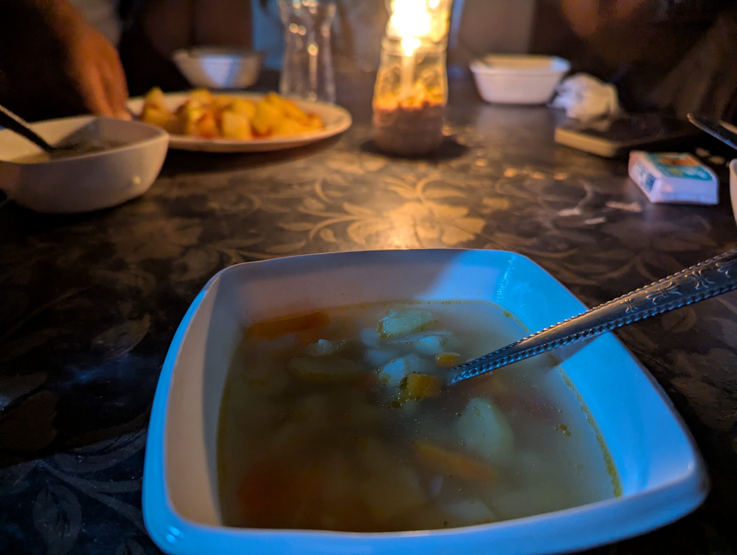 中轉點是一個住家一樓,會把大件行李寄在這裡,並吃午餐